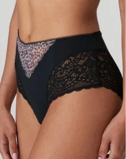 Culotte haute vintage chic en dentelle noire, ornée d’une rose brodée chic. Séduisante transparence au niveau des fesses, le devant est doublé. La taille haute enveloppe confortablement votre ventre, la coupe élégante de la jambe vous donne une silhouette gracieuse.