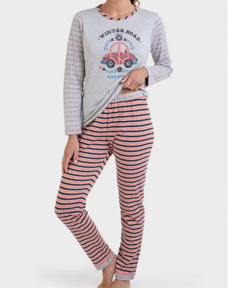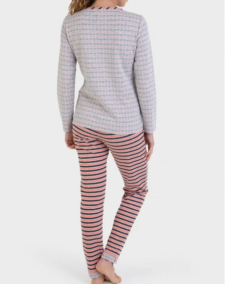 Le pyjama reversible Massana « Coral Love & Grey » ne vous offre pas un, mais deux looks grâce à son top réversible ! D’un côté, vous pouvez opter pour un look classique avec des rayures colorées, d’un autre côté opter pour un look original aux motifs cœur. Ce pyjama vous permettra de choisir le look adapté à vos envies.