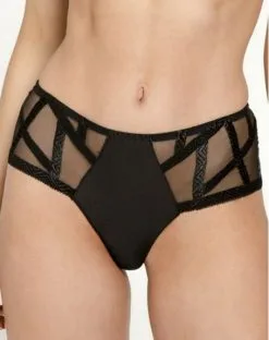 Le shorty de la collection Série par Louisa Bracq propose une forme échancrée et légère agrémentée d’un jeu de transparence et de designs graphiques et osés. La parfaite alliance de séduction et de confort.
