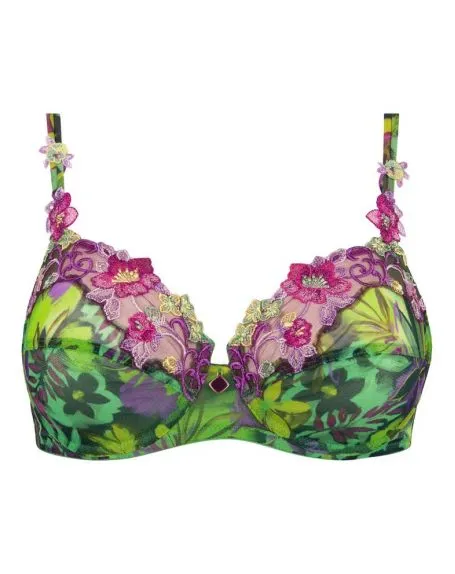 La collection Imagine une Île de la marque Lise Charmel propose une ligne colorée sous des tons lumineux et exotiques. Elle offre un parfait mélange entre un motif végétale riche en couleur et la finesse d’une broderie au motif floral sur un tulle délicat. Chaque coupe est travaillée pour un rendu chic et léger pour une allure moderne mettant en avant la beauté du corps de la femme.