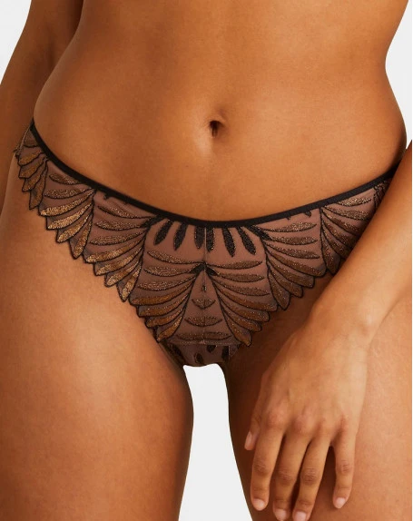 Le tanga de la collection Sensory Illusion de la marque Aubade offre un graphisme luxueux et séduisant, signé Aubade en collaboration avec la maison de création Iris Van Herpen.